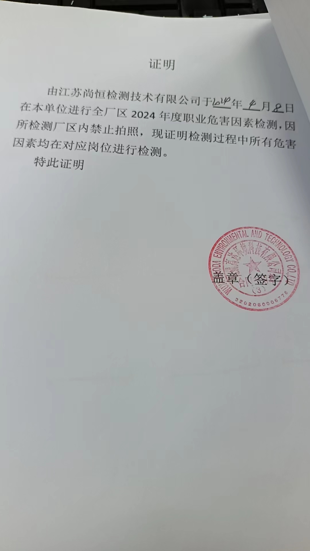 用人單位名稱 無錫協鑫塑料制品有限公司 用人單位注冊地址 無錫市錫山區鵝湖鎮彩橋村甘東路10號 聯系人 范少華 報告名稱及編號 職業病危害因素檢測報告 Z20250996 項目組人員 郭佳、羅燕平、周康、尚志華 現場調查人員 郭佳、羅燕平 現場調查時間 2025年10月24日 用人單位陪同人 范少華 采樣與測量人員 周康、尚志華 采樣與測量時間 2025年11月24日 用人單位陪同人 范少華 現場照片(現場調查及現場采樣與測量照片,含企業名稱或標識的合影照片) ? ? ? ? ?...
