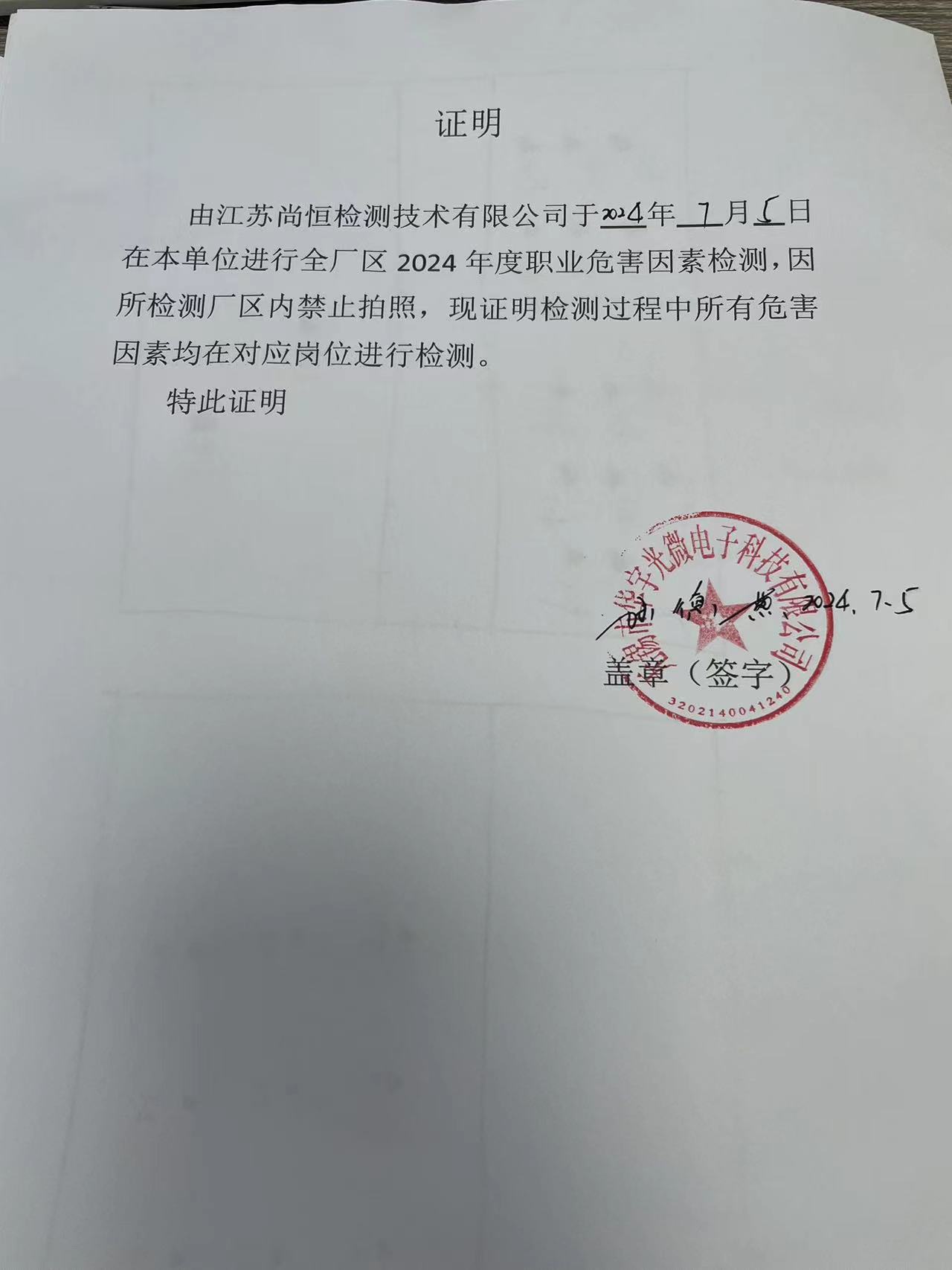 用人單位名稱 江蘇興鵬制衣有限公司 用人單位注冊地址 無錫市東港鎮(zhèn)湖塘橋村 聯(lián)系人 顧海平 報告名稱及編號 職業(yè)病危害因素檢測報告 Z20251118 項目組人員 耿朔辰、方佐、周康、尚志華 現(xiàn)場調(diào)查人員 耿朔辰、方佐 現(xiàn)場調(diào)查時間 2025年11月12日 用人單位陪同人 顧海平 采樣與測量人員 周康、尚志華 采樣與測量時間 2025年12月1日 用人單位陪同人 顧海平 現(xiàn)場照片(現(xiàn)場調(diào)查及現(xiàn)場采樣與測量照片,含企業(yè)名稱或標識的合影照片) ? ? ? ? ?...